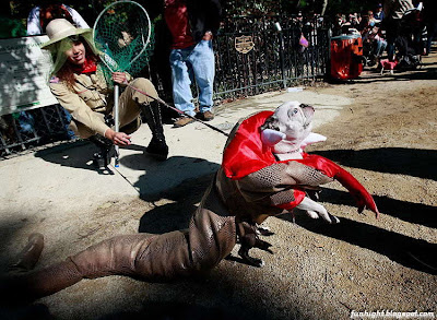 Parade of dog clothes in New York has an annual parade of costumes for household pets in honor of Halloween. Poor doggie, the owners loved them so much, just across bags