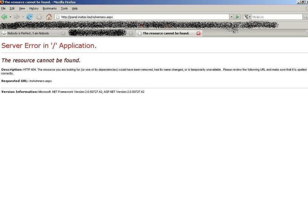 Ok, 80 % din cei ce acceseaza pagina aia cu castigatorii nu vor stii probabil sa stearga x-ul ala (http://panel.insites.be/ro/winners.aspx ). E greseala sau rea intentie? dreaq sa ii ia…traim in Romania! (sau parca sunt belgieni…uatevãr). Ei fac studiile astea pentru nu stiu ce firme care marca banu’ gros..iar ei se sterg la fund cu pagina castigatorilor..deja ma enervez…